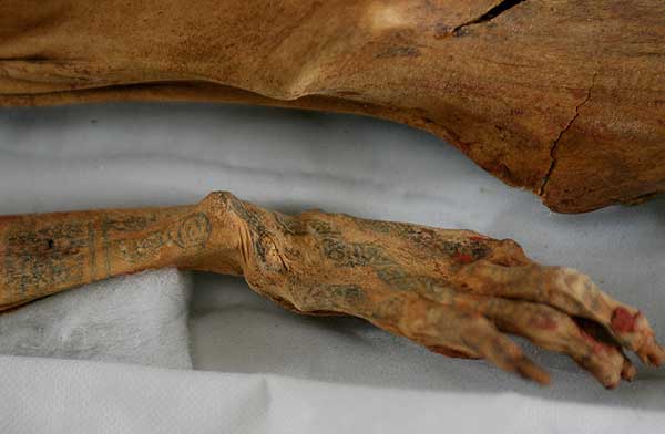 Conocido y famoso es el caso de la Señora de Cao (300 a 400 d.C.) a quien se le encontró que su cuerpo estaba tatuado en los antebrazos, manos y pies con arañas, serpientes e hipocampos o caballitos de mar. Los tatuajes indicarían que esta gobernante Moche habría tenido un gran poder político además de tratarse de una sacerdotisa Moche con dotes “sobrenaturales" de vidente y sanadora.