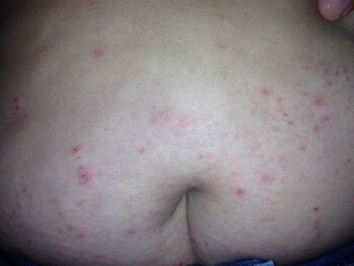 Niños mayores, adolescentes y adultos: pápulas excoriadas localizadas principalmente en: codos, tobillos, glúteos, escroto, mamas y axilas.